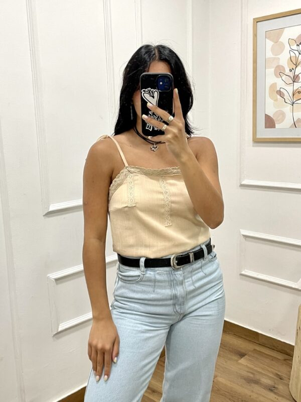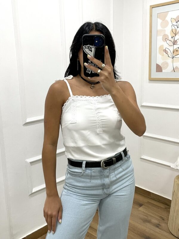 Blusa musculosa con encaje en el escote y tiras regulables