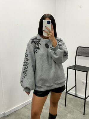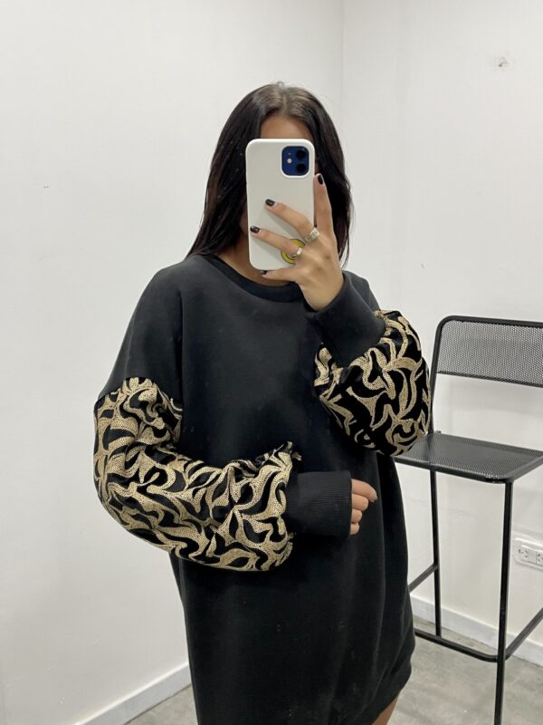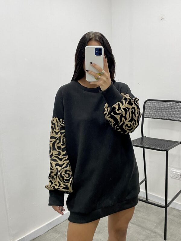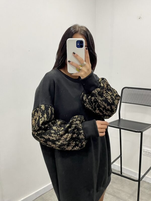 Buzo de frisa con cuello redondo y mangas princesa de foil o lentejuelas.