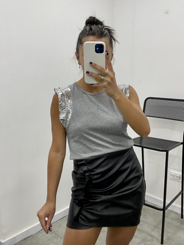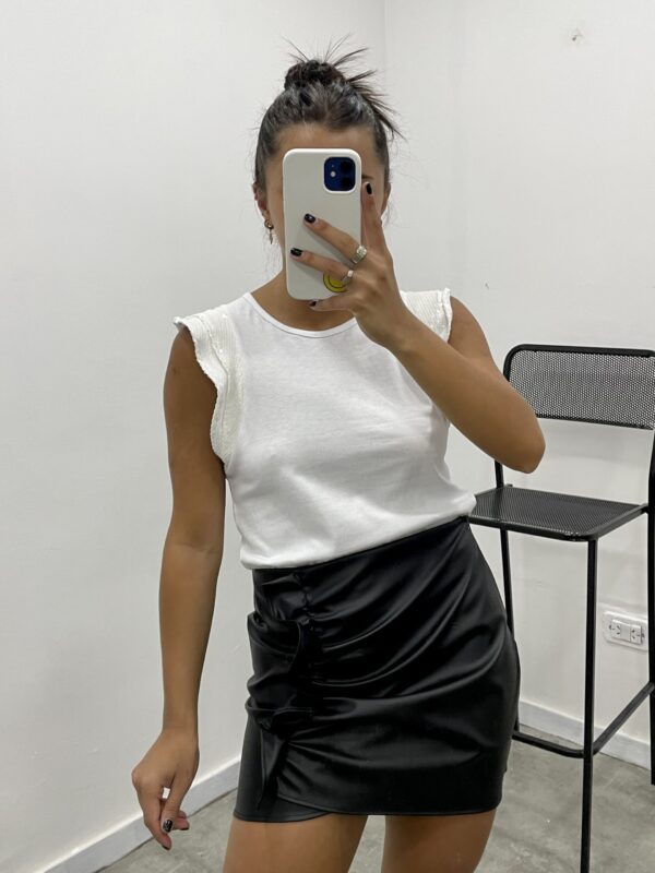 Musculosa de algodón con cuello redondo y volados de lentejuelas.