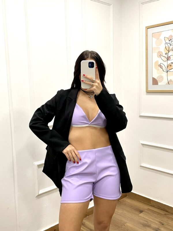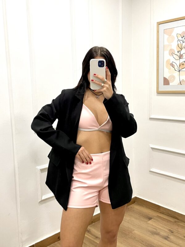 Short de eco cuero con cierre invisible en el lateral.